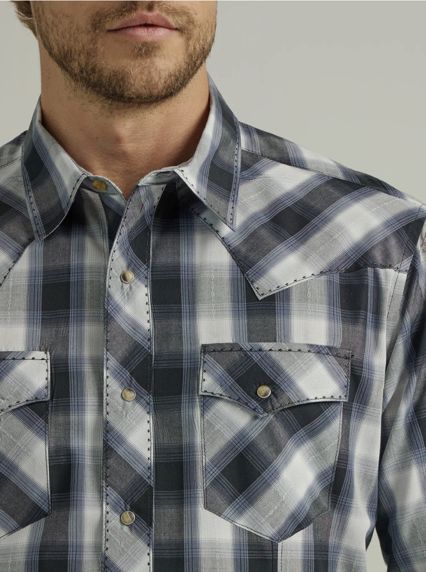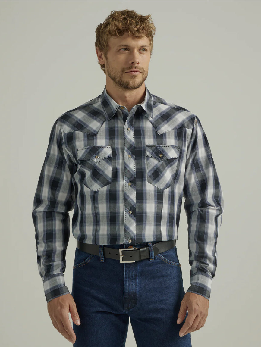 WRANGLER MEN'S MODERN FIT BLACK AND WHITE PAID LONG SLEEVE SHIRT